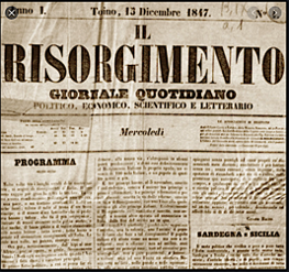Il vero punto di svolta nella vita di Cavour e nella natura del suo impegno, svolta figlia di una lunga e consequenziale maturazione, fu comunque, nel dicembre 1847, la fondazione del quotidiano “Il Risorgimento”, insieme al liberal-cattolico Cesare Balbo, cui Cavour stesso, che ne fu il primo direttore, diede un programma di cui certo giova riportare qualche passo: “La nuova vita pubblica che si va rapidamente dilatando in tutte le parti dell’Italia non può non esercitare un'influenza grandissima sulle sue condizioni materiali, Il risorgimento politico di una nazione non va mai disgiunto dal suo risorgimento economico. Le condizioni dei due progressi sono identiche. Le virtù cittadine, le provvide leggi che tutelano del pari ogni diritto, i buoni ordinamenti politici, indispensabili al miglioramento delle condizioni morali di una nazione, sono pure le cause precipue de’ suoi progressi economici. Là dove non è vita pubblica, dove il sentimento nazionale è fiacco, non sarà mai industria potente. Una nazione tenuta bambina d’intelletto, cui ogni azione politica è vietata, ogni novità fatta sospetta e ciecamente contrastata, non può giungere ad alto segno di ricchezza e di potenza, quand’anche le sue leggi fossero buone, paternamente regolata la sua amministrazione”.