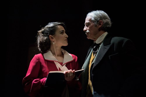 Molto interessante è già la scelta stessa della rappresentazione spazio-temporale di eventi che si svolgono a mezzo secolo di distanza l’uno dall’altro, mettendo assieme, isolate da un diaframma immaginario, l’anziana Arendt (Anita Bartolucci) e la giovane Hannah (Mersila Sokoli). La soluzione è stata trovata, rispetto all’osservatore, dividendo in modo immaginifico lo spazio sinistro da quello destro della rappresentazione, in modo che entrambe le protagoniste siano quasi sempre presenti contemporaneamente in scena e si completino le battute. Di là, à gauche (che corrisponde al periodo moderno della Banalità del male), un comodo divano con poggiapiedi, con una grande finestra che fa da vetrina, sotto la quale è sistemata una mensola con un candelabro a sei braccia, mentre nella mezzeria in comune campeggia sullo sfondo un piccolo scrittoio e, su di un piano appena più avanzato, si colloca un tavolo da pranzo. Di qua, à droite (periodo prenazista), un canapè dove si svolgono gli incontri tra il maturo professore e la sua giovane allieva, la cui storia sentimentale è raccontata fin dall’esordio, quando il conquistatore Heidegger subisce il colpo di fulmine, incrociando lo sguardo di Hannah tra gli allievi della sua nuova classe, all’inizio dell’anno accademico 1924.