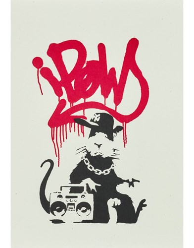 Appartengono al periodo del Punk britannico i Graffiti di New York anni Novanta, in cui l’artista prende a soggetto icone della cultura hip hop, i topi, tra cui il più famoso “il topo gangster” col cappello, la catena e la musica a tutto volume. Scrive l’artista: “Esistono senza permesso. Sono odiati, braccati e perseguitati. Vivono in una tranquilla disperazione tra la sporcizia. Eppure, sono capaci di mettere in ginocchio intere civiltà”. Quale monito più messianico? L’artista alludeva all’isolamento degli artisti antagonisti, ma ora che masse di emarginati premono alle porte del mondo, la profezia esorta a non sottovalutare le invasioni che non si possono solo reprimere, ma occorre allargare lo spazio di cultura, civiltà, formazione. Il rischio è quello formulato sul cartello appeso al collo della “scimmia laugh now”, esposta la prima volta nella mostra Existencilism – an Exhibition of Art, Lies and Deviousness di Los Angeles nel 2002. Banksy sostiene che dalla pubblicazione dell’Origine della Specie di Charles Darwin (1859) gli umani hanno ridicolizzato la catena meno evoluta. “Laugh now, cioè ridi adesso, ma un giorno saremo noi a comandare”.