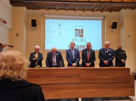 Elettra Marconi ha ricordato la visita del padre al Vate a Fiume nell’autunno 1920, su incarico del Governo italiano, per tentare una possibile mediazione con i dannunziani. La travolgente passione dannunziana per le donne (circa 500, ha quantificato scherzosamente Frassetto: da far invidia ad Humphrey Bogart), e l’altra per il lusso e l’eleganza, quasi da moderno Petronio arbitro. E la netta avversione ad Adolf Hitler, da lui definito con gli epiteti più coloriti, da “Pagliaccio feroce” ad “Attila imbianchino”. Presente in sala, un pubblico di tutto rispetto. Tra gli altri, Silvano Olmi, presidente del “Comitato 10 febbraio”; Simonetta De Ambris, pronipote di Alceste, il sindacalista rivoluzionario, ardente mazziniano, morto poi da antifascista in Francia nel 1934, che nel 1920 era stato capo di Gabinetto di D’Annunzio a Fiume, elaborandone poi la Costituzione, la storica “Carta del Carnaro”; Abdon Pamich, fiumano, maratoneta medaglia di bronzo alle Olimpiadi di Roma del 1960 e d’oro a quelle di Tokyo del 1964, e Sandro Cossetto, parente di Norma, la giovane istriana vittima (ottobre 1943) delle foibe, divenuta simbolo dei massacri titoisti. Pietro Sia, docente universitario e scrittore, intagliatore di legno per passione, ha donato a Frassetto una copia in legno dello storico stemma dei Granatieri di Sardegna: da destinare, poi, al Museo-Archivio storico di Fiume.