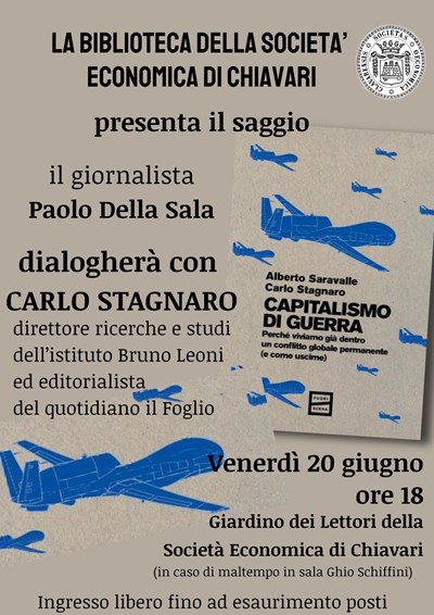 Un libro tratta approfonditamente il tema dell’intreccio tra guerre ed economia, inclusa la importante questione dei dazi doganali, su cui male si esercitano trombette e tromboni dei media mainstream e dei social. Anche sui dazi è utile fornire dati concreti, e non virus utili a decimare l’opinione pubblica. Il testo in questione è il recente saggio Capitalismo di guerra (Fuori Scena, 2025), di Alberto Saravalle e Carlo Stagnaro, che ho avuto il piacere di presentare in un incontro, organizzato dalla Biblioteca della Società Economica di Chiavari, con la presenza Carlo Stagnaro (direttore del Centro ricerche e Studi dell’Istituto Bruno Leoni ed editorialista de Il Foglio).