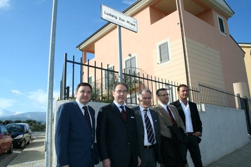 Oggi quel dibattito è più attuale che mai. L’Europa vive in un clima di crescente regolazione: governi e istituzioni moltiplicano controlli, registri, autorizzazioni, alimentando una tensione che richiama esattamente ciò che Mises aveva spiegato con chiarezza. Quando il potere si espande oltre misura, restringe lo spazio dell’azione umana e indebolisce la capacità delle persone di orientare la propria vita. La Calabria stessa, spesso soffocata da vincoli, piani astratti e procedure interminabili, conosce bene il prezzo di questa ingerenza. È per questo che l’intitolazione del 2010 continua a parlare con forza: ricorda che la prosperità nasce dalle persone, non dall’apparato.