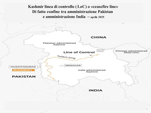 Inoltre la forte vena nazionalista indiana è un fattore di ulteriore divisione tra i due Stati sulla questione Kashmir, infatti il capo del governo indiano Narendra Modi, nel 2019, ha abolito quella parte della costituzione indiana che garantiva l’autonomia al territorio o provincia del Jammu e Kashmir, il cui capoluogo è stagionale: Srinagar d’estate, Jammu in inverno. Una scelta nazionalista mirata ad una integrazione completa del Kashmir nell’India. Dall’inizio di aprile 2025 l’area è stata teatro di molteplici violazioni del cessate il fuoco, con tentativi di infiltrazione da parte delle forze pakistane lungo la linea di controllo, soprattutto nelle zone di Krishna Ghati e Poonch. Azioni contrastate dalle forze indiane che hanno sventando numerosi tentativi terroristici dinamitardi.