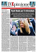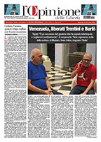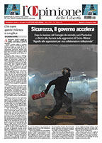 La prima pagina de L'Opinione delle Libertà è disponibile a partire dalle ore 8 del mattino dal martedì al sabato. Mentre la versione integrale del pdf per gli abbonati viene inviata in anteprima alle 19 del giorno precedente. Per abbonarti clicca qui.