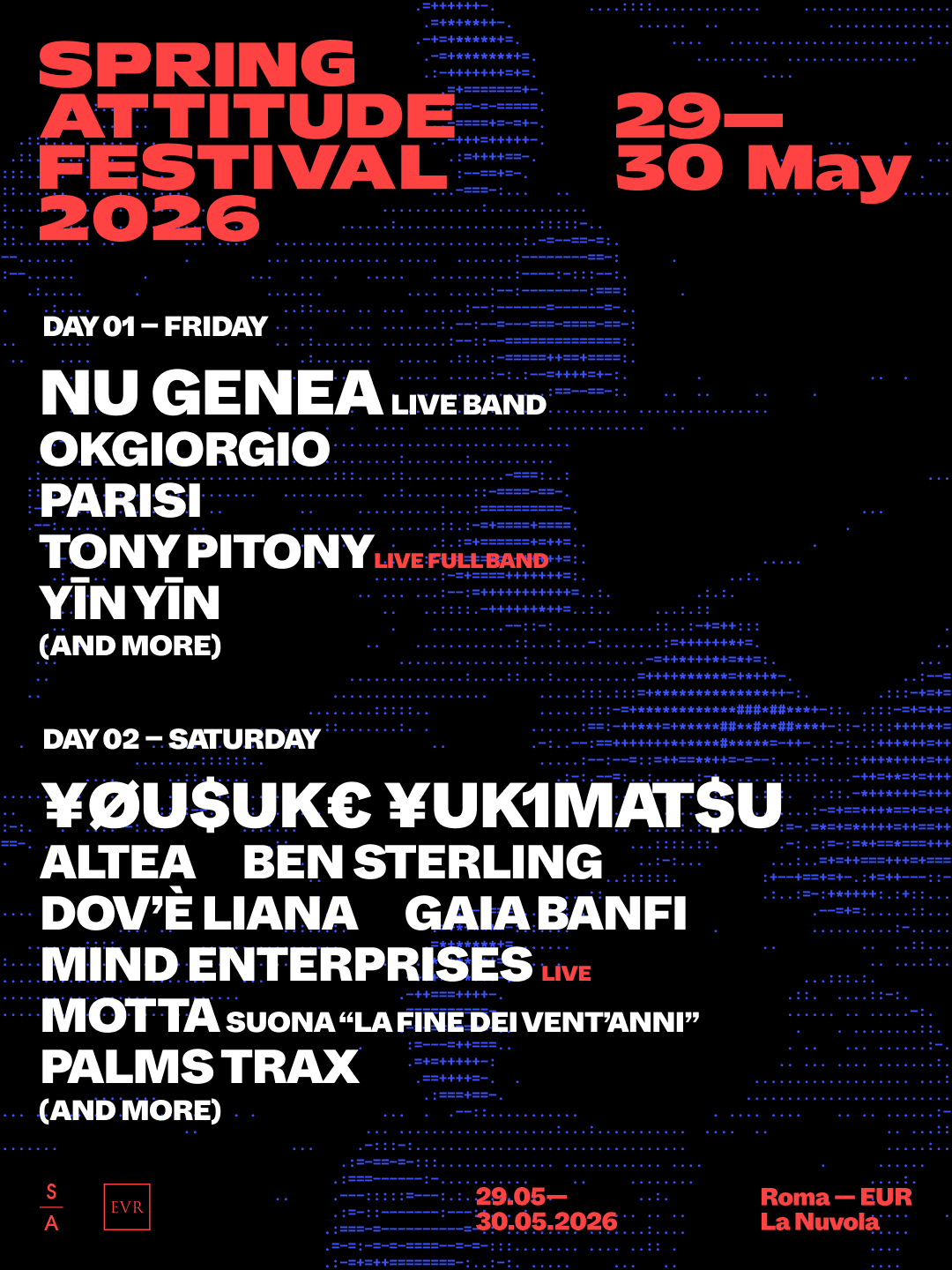 Spring Attitude Festival amplia la line-up e svela la programmazione giornaliera della XV edizione, confermando l’appuntamento del 29 e 30 maggio 2026 a Roma. Il festival, co-prodotto con EUR SpA. Con questo nuovo annuncio, la manifestazione definisce in modo più netto l’identità delle due giornate, ribadendo il proprio ruolo di riferimento nel panorama italiano della musica contemporanea: un progetto capace di tenere insieme live e club culture, nuove generazioni e protagonisti della scena internazionale, mantenendo una visione coerente e trasversale.