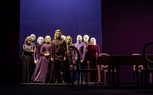 Malgrado che tutti loro li avesse fatti fuori la guerra, le due regine e Anna attribuivano la responsabilità del versamento di cotanto nobile sangue al solito Riccardo. Che però, va detto, non si faceva mancare nulla, avendo al suo servizio sicari devoti e fidatissimi (seppur nobili), come i Sir James Tyrell, Richard Ratcliffe (Lorenzo Vio), William Catesby (Riccardo Bocci), Robert Brackenburg e lord Francis Lovell. Abbastanza, come si vede per togliere tutte le sedie scomode dal tavolo: nello spettacolo uno di loro, addirittura, morde una mela mentre accoltella alle spalle uno dei rivali di Riccardo. Maria Paiato veste fin dall’inizio la tunica nera del demone reale, affetto da pronunciata zoppia, che sempre conciona in aspetti colti e subdoli, aspirando l’aria perennemente satura del complotto. In cui si muovono a proprio agio i suoi fedelissimi, come Lord Hastings (Riccardo Bocci), che però viene eliminato perché scettico sull’investitura di Riccardo.