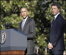 Banchetto elettorale di Matteo Renzi, ospite di Barack Obama alla Casa Bianca. Il successo di questa operazione è indiscutibile. E anche scontato...