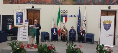 Un’iniziativa emozionante ha caratterizzato la quarta edizione del Fair play for life 2025, svoltasi ieri presso il salone d’onore del Coni. L’evento ha visto la consegna dei premi in pieno stile olimpico, organizzata da Ruggero Alcanterini, presidente del Cnifp (Comitato nazionale italiano fair play), con la collaborazione dei vicepresidenti, l’avvocato Ezio Bonanni, presidente dell’Osservatorio Nazionale Amianto (numero verde 800 034 294), e Renato Mariotti, sindaco di Loreto Aprutino, e del segretario generale Roberto Antonangeli. In occasione della Giornata internazionale per l’eliminazione della violenza contro le donne, Alcanterini ha introdotto la storia della Tedofora di Emilio Greco, una delle sculture più riconoscibili legate alle Olimpiadi di Roma del 1960. L’opera raffigura una giovane donna nell’atto solenne di portare la fiaccola, simbolo di continuità tra la storia dello sport italiano e il presente. Durante la cerimonia, è stata consegnata simbolicamente l’originale torcia olimpica degli anni Sessanta, custodita in teca insieme ad altri cimeli concessi dalla famiglia Garroni.