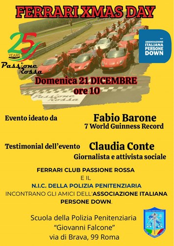 La passione per i motori incontra la solidarietà. Il Ferrari club Passione Rossa, il più noto club italiano dedicato al mito del Cavallino rampante, torna a Roma con “Ferrari Christmas Day” , un evento speciale realizzato insieme al Nic – il Nucleo investigativo centrale della Polizia penitenziaria, per celebrare legalità e impegno sociale. L’appuntamento è per domenica 21 dicembre alle ore 10, quando una suggestiva parata di Ferrari attraverserà la Capitale scortata dalle pattuglie della Polizia penitenziaria. Testimonial dell’iniziativa sarà Claudia Conte, giornalista, attivista sociale e nuovo volto dell’Osservatorio nazionale bullismo e disagio giovanile. “Incontri come questo – afferma Claudia Conte – dimostrano quanto la solidarietà possa diventare concreta quando istituzioni, associazioni e cittadini uniscono le forze. Vedere negli occhi dei ragazzi l’emozione e la meraviglia è il più grande regalo di Natale. Ricordare il sacrificio delle vittime della mafia significa tenere viva la memoria e costruire un futuro più giusto e consapevole.”
